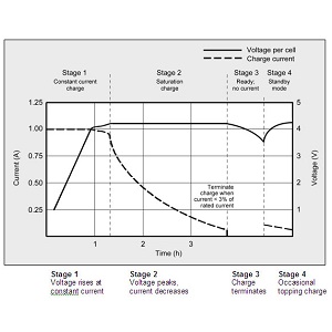 زمانی که جریان شارژ به مقدار خیلی کم (مثلاً 0.1 آمپر) برسد، شارژر بهطور خودکار شارژ را متوقف میکند یا به حالت نگهداری (standby) میرود.